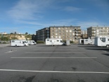 Het weer was slecht en koud. Het was een groot parkeerterrein achter een slagboom op de boulevard naast de Ferry. We bleven hier 2 nachten. Hier zagen we de fikse regenbuien vanuit zee aankomen. Door het weer was het stil rond de camperplaats. We hebben nog even het stadje verkend.