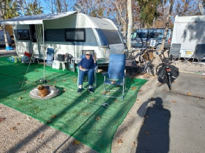 Dinsdag, 23 januari 2024. Vandaag is het prachtig weer, blauwe lucht met heel veel zon. De koude wind is gelukkig wat afgenomen. Nu is het tijd voor buiten zitten. Zondag zijn we nog naar de markt in Albir geweest. Trudy heeft weer de nodige lappen gekocht, tewijl ik een dun jack heb gekocht. Ik had alleen dikke winterjassen. Te warm als het straks wat warmer gaat worden. Toen we weer naar de camping wilden rijden bleek Trudy een lekke band te hebben. De fiets hebben we gisteren naar de fietsenmaker in Albir gebracht. Daar zou men proberen de fiets gisteren nog te maken, doch ik heb geen bericht via Whatsapp gekregen dat hij gemaakt was zoals was beloofd. Dus even afwachten nog.