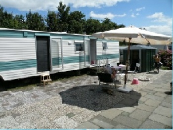 We bezochten toen opnieuw verschillende caravanparken op Goeree Overvlakke en Schouwen. Want daar had ze speciaaL uit het verleden.goede herinneringen aan Veel van de caravans die we bekeken waren op de Engelse wijze aangekleed met veel gordijntjes, lanpen, kleedjes, etc. Dat was nu niet onze smaak! Een wit chalet op Goeree sprong er uit en die leek haar wel wat. Het chalet was wel aan de prijs, maar zag er goed uit….dachten we. Totdat ik aan de achterkant een flink gat zag in een van de wanden waar ik zo maar met mijn vinger rond het gat door de wand kon prikken… Totaal verrot dus!! De parkeigenaar gaf geen krimp en dus kochten we daar niets. Alle caravans die we gezien hadden stonden al op een vaste plaats met de complete omgeving ingericht. Uiteindelijk besloot Trudy ook maar eens bij een handelaar te gaan kijken waar teruggehaalde caravans te koop stonden. Zo kwamen we terecht in Brouwershaven. Daar vond Trudy wat ze zocht, een betaalbare nette stacaravan die er goed uitzag, die zowel binnen als buiten gaaf was. En een caravan met 2 slaapkamers! Toen nog een plek op een plek op een park te vinden. Die bleken slecht voorhanden te zijn. Uiteindelijk kwamen we in Sirjansland, op Schouwen terecht op de camping “ ‘t Hoge Zand” waar nog een aantal vrije plekken voorhanden waren. We kozen van een aantal opties een plek uit op een hoek met nummer 65. Het was een mooie ruime plek, maar het onkruid stond daar al erg hoog. Na wikken en wegen besloot Trudy de plek te nemen. De caravan werd gekocht, geregeld werd dat de caravan op de bewuste plek werd gezet en door de campingeigenaar werd aangesloten op de waterleiding en de riolering. Vervolgens werd de ruimte voor de caravan vol gelegd met tegels door Piet, een klusjesman op de camping, waardoor het aanzien ineens sterk verbeterde. Hierna werden nog vele klussen aangepakt.